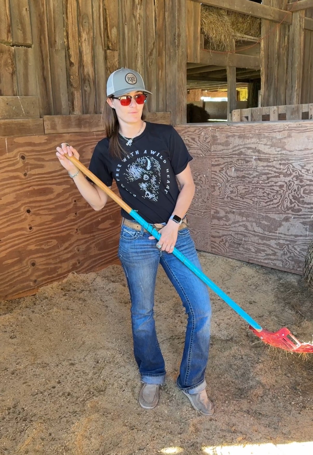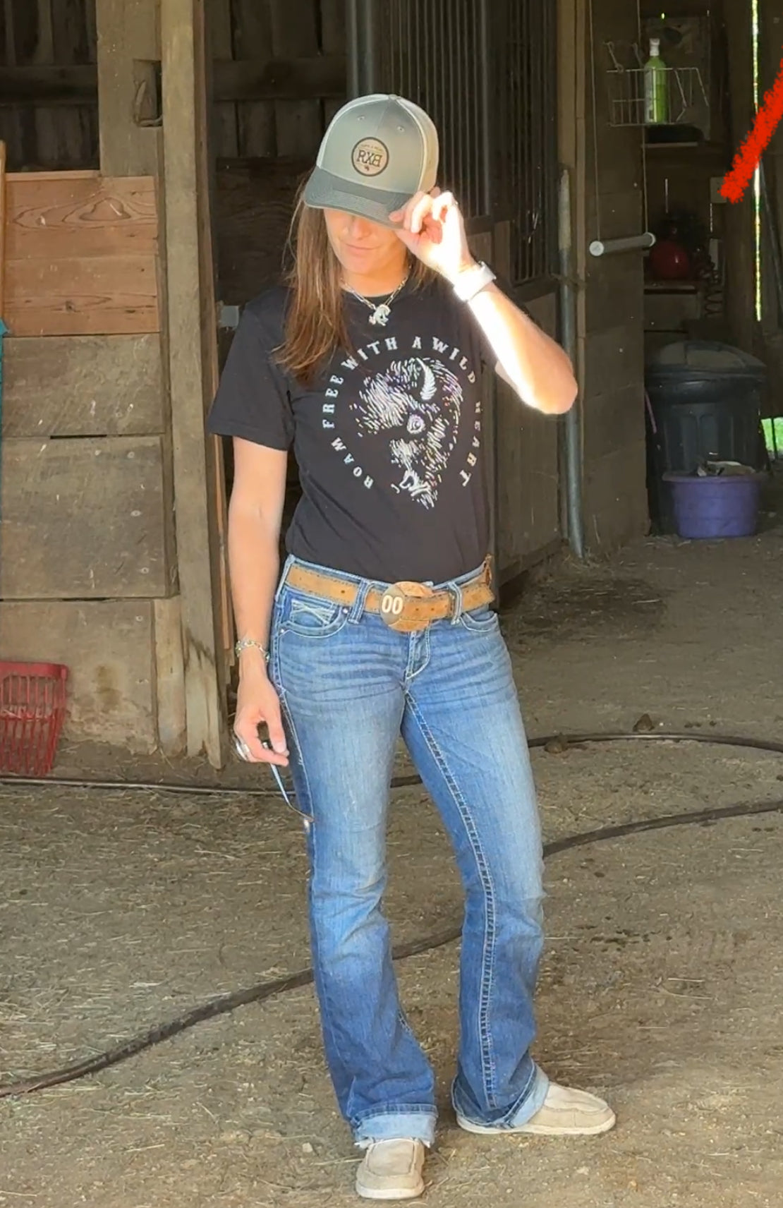Roam Free with a Wild Heart Heavy Weight Jersey style tee with the R,W&B to the Bone logo has a soft to the touch feel with a longer body length to accommodate riding styles.